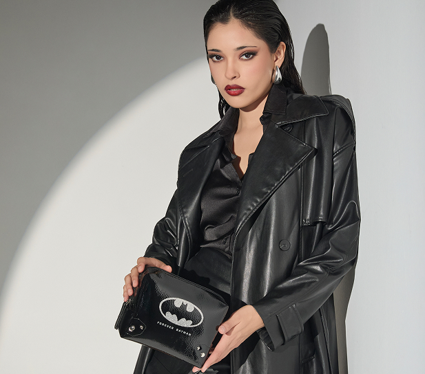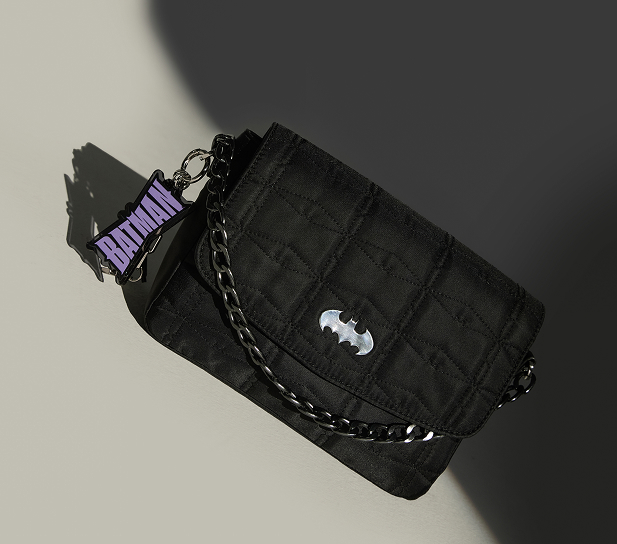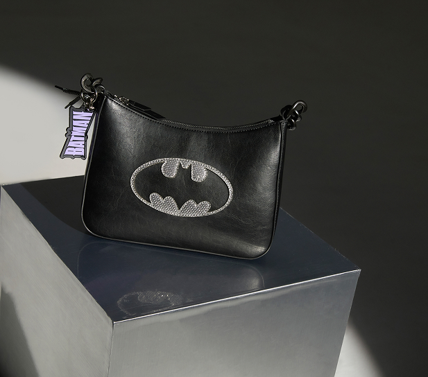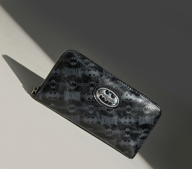 Inspired by the most iconic symbols of Gotham City and the legendary Bat-signal, the collection features wallets, cosmetic pouches, and cardholders crafted with textured finishes, metallic details, and functional design that adapt seamlessly to both casual and edgy looks. Each piece is enhanced with personalized interiors and subtle graphic elements, transforming every accessory into a true statement of power and style.